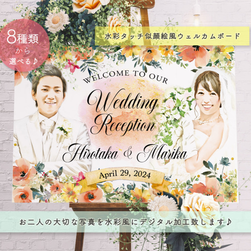 | メーカー | 額付き♡Welcomeボード・似顔絵・Weddingボード 限定】水彩似顔絵風ウェルカムボード |