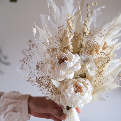 | 商品の特徴 | ウェディングブーケ ブートニア付き ドライフラワー ホワイト ゴールド。ドライフラワー ウエディングブーケ ブートニア付き 結婚式 前撮り。ナチュラルブーケL ホワイトゴールド ウェディング 結婚式 パーティー。【受注制作】 *只今欠品中になりますこちらはご注文を受けてからお作りする受注制作ブーケになります。*全て大手メーカー様の高級な花材を使用。※大変申し訳ごさいませんが欠品中により下のピオニーがソーラーガーデニアに変更とさせて頂きます(ほとんど変わらない位になります)◇追加オプション◇ヘッドパーツ(髪飾り) サービス価格10本 ¥1800 18本 ¥ 3000*リボンダブル使いは追加 ¥100こちらはご注文後にお作りする受注ブーケになります。◆サイズ 大きめ縦約 55~57cm前後 幅約 35~37cm前後◆発送*丁寧な梱包を致しますが、ドライフラワーはとても繊細ですので、 輸送中の花落ち、穂落ちなどご理解いただけますようお願い致します。*動きを出す為一部グルー加工、ワイヤリング加工ございますので、引っ張らないようにお願い致します。ご不明点などございましたらお気軽にご質問くださいませ。送料無料・ドライフラワー風ブライダルブーケA】 秋冬の結婚式や二次会。❁⃘*. 綺麗系white✧*パンパスグラスブーケ&ブートニアセットインパクトのある大きなマグノリアフラワーとボリュームパンパスグラスにゴールドのパームスペードを組み合わせた結婚式王道のブーケ&ブートニアのセットになります。【特別価格】パームフラワーのウェディングブーケ&ブートニア 結婚式 前撮り。ドライフラワーブライダルブーケ ネイティブホワイト。✮パンパスグラスは可能な限りホワイトよりの、通常より高価なものを使用してお作りしております。ドライフラワーブライダルブーケ パームフラワー さくらピンク クラシカル。リストドレス リストブーケ リストレット キャンドルリース。*極力同じようにお作り致しますがドライフラワーは個体差が大きくあり、天然の植物な為色形ひとつひとつ違うので、全て同じにはなりませんことをご了承頂けますようお願い致します。NieR:Automata 月の涙 フラワーフレーム ニーアオートマタ UUL。卒業式 ブーケ 卒業祝い お菓子ブーケ バルーンブーケ誕生日 花束 オーロラ。*緩衝材と不織布ペーパーで丁寧に梱包して発送致します。~sold out ~プリザーブドフラワー ローズの華やか ウェディングブーケ。~sold~ アネモネとテラコッタオレンジのスワッグブーケ プリザーブドフラワー。一つ一つ丁寧にお作りしておりますが万が一取れてしまった時はお手持ちの木工用ボンド等でお直し頂けましたら幸いです。花かんむり 花冠 ハーフバースデー 誕生日 結婚式 ベビークラウン 髪飾り。ブーケ ブートニア。結婚式披露宴ブライダルブーケウェルカムスペースウェディングフォトフォトロケーションウェディングドレス和装インテリアブーケパンパスグラスブーケインテリア雑貨プレゼント誕生日スワッグギフトアイボリー季節/イベント···ウェディング | ||