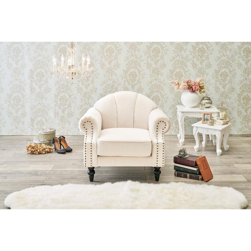 アウトレット【展示品・新品】★姫系1Pソファ(ファブリック)エメル【グレーGY】 姫系ソファー 1P ホワイト ソファ 姫系 高級感 エレガント 大人可愛い