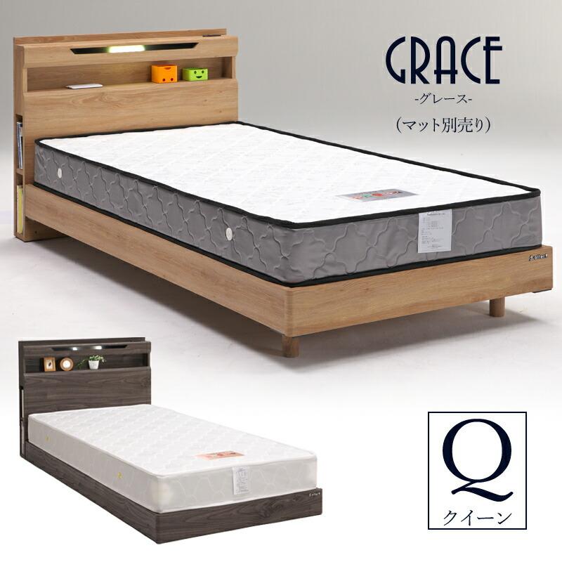 - ベッド・マットレス > ベッドフレーム > クイーン ベッドフレー ム 単品 収納 コンセント付 新品送料込 MEDI ベッドフレーム クイーン クイーンベッド 棚 ライト 照明 コンセント