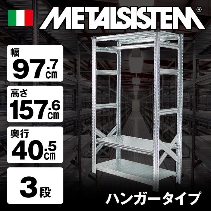 - 棚・ラック・シェルフ > スチールラック・メタルラック > LSISTEM W1577 ハンガーラック メタルシステム メタルシステム3段(奥行40cm)幅977 高さ1576cm ハンガータイプ