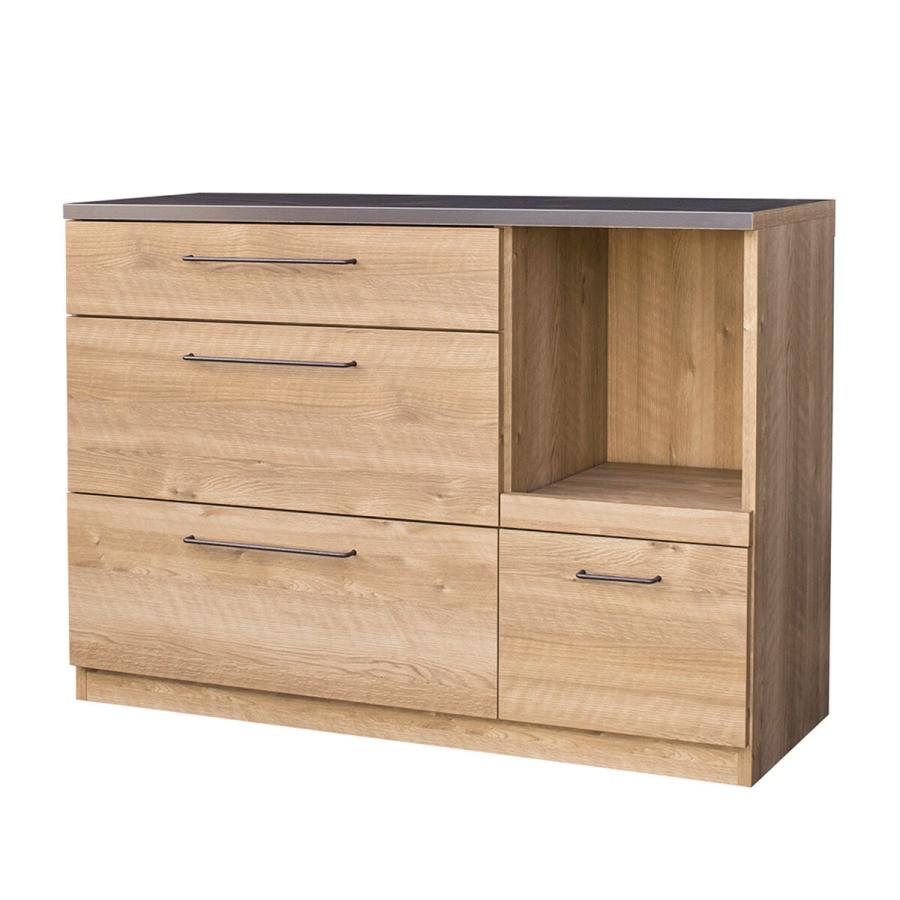- キッチン収納 > 食器棚・キッチンカウンター > 特殊鋼板天板 ヴィンテージ風カウンター (引き出し+扉 幅120cm) 特殊鋼板天板 ヴィンテージ風カウンター (引き出し+扉 幅120cm)