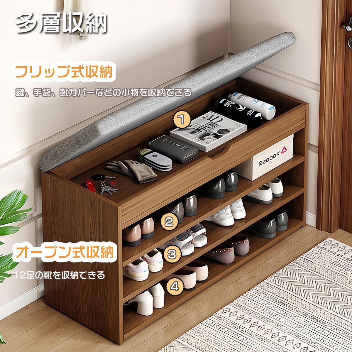 ベンチ式シューズラック シューズボックス☆幅80cm ブラウン シューズボックス 楽天市場】玄関ベンチ シューズボックス 収納 木製 シューズラック 2/3