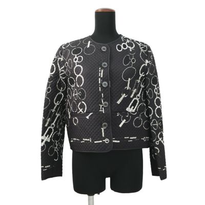 - レディース > ジャケット・アウター > 未使用級 CELINE セリーヌ 34 ノーカラー シャスールジャケット 黒 セリーヌ ジャケット ノーカラージャケット ウール/モヘア レディース