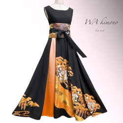| メーカー名 | b3defcbb6bc5 | ブランド名 | 着物リメイク 黒留袖 ロングワンピースM〜L オレンジゴールド 金駒刺繍 際立つ品格!!黒留袖 |